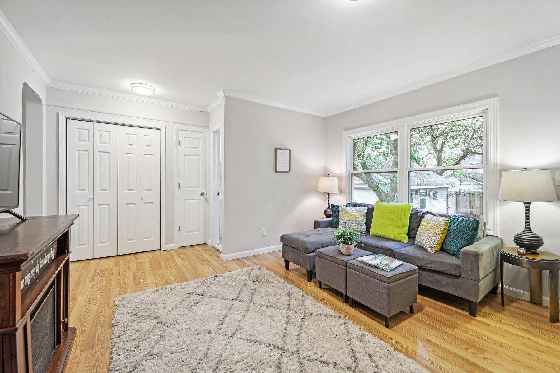 The inviting front porch welcomes you into the living and dining area and leads to the open kitchen with breakfast bar. The large family room is the perfect place to relax and entertain, with a full bath, windows overlooking the backyard, and access to the deck.