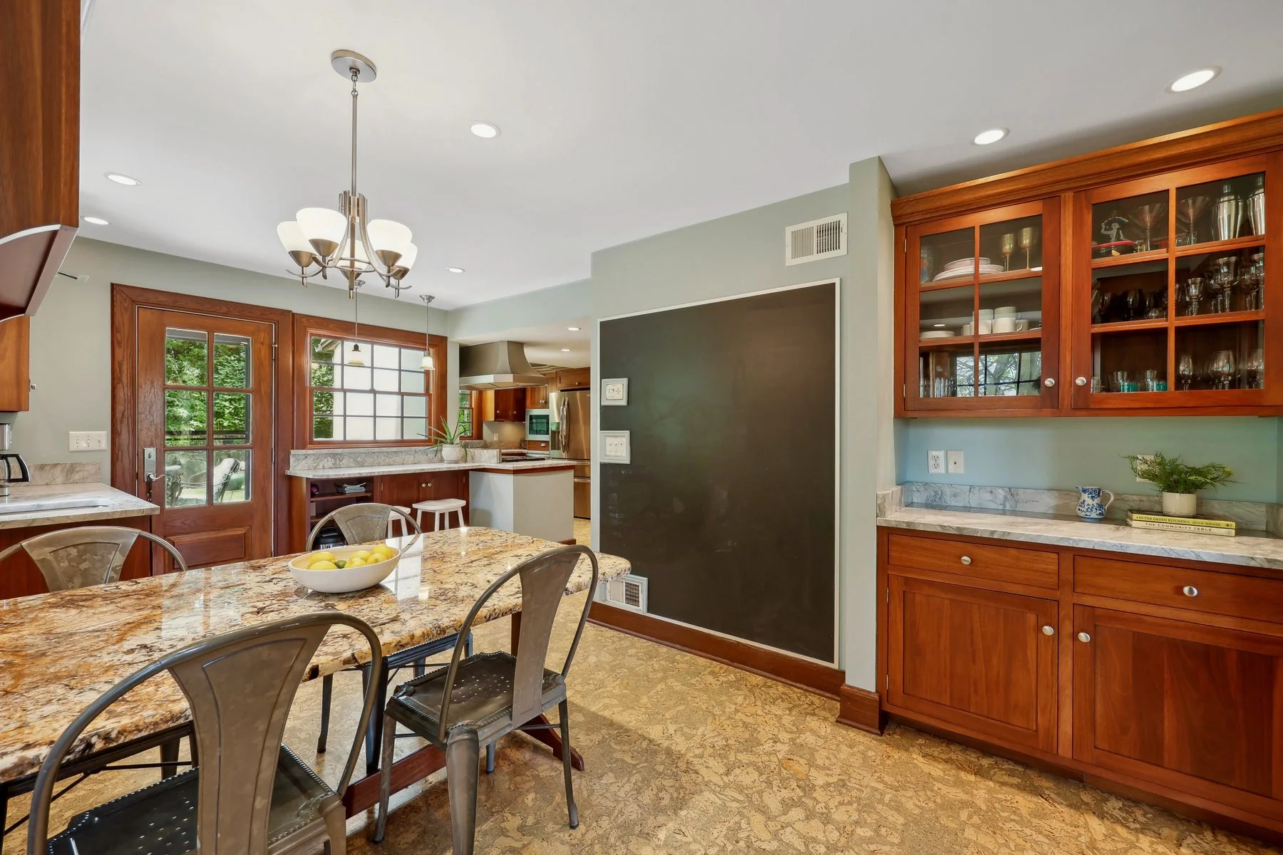 Meticulously updated & finished across 3 levels, this exceptional property boasts beautiful period details, with a stone wood-burning fireplace, original wood trim & hardwood floors, leaded glass windows, curved archways & custom built-ins. Highlights include spacious rooms, an inviting screened front porch, gourmet kitchen with a breakfast area, 1st floor office, finished basement, thermal windows, 2 zone central air & an energy efficient radiant heating system throughout. The gracious foyer is flanked by a large living room with French doors that open to a stone patio & a formal dining room with a leaded glass bay window. The kitchen is a chef's delight, showcasing premium stainless steel appliances, wood cabinets, cork floors & granite counter-tops, with access to a second stone patio. A powder room & office round out the first level.