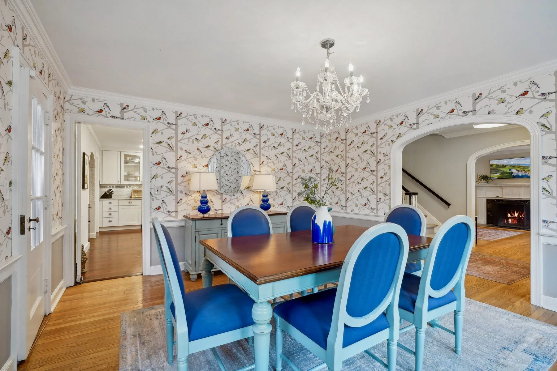 Featuring a spacious flexible layout, this home seamlessly blends original architectural details with modern amenities. The inviting foyer welcomes you in, flanked by a living room with wood burning fireplace & large dining room that opens to a screened porch. The gorgeous updated eat-in-kitchen is a chef's delight, with quartz countertops, a breakfast bar, farmhouse sink, stainless steel appliances, pantry & an original built-in cupboard. The first floor bedroom with en-suite full bath is perfect for guests or an au-pair suite. A powder room & office/den overlooking the backyard, complete the first level.